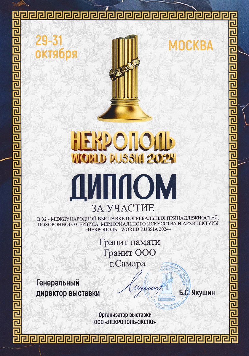 Ежегодные экспоненты профильных выставок в России «Некрополь», «Карелфорум», «Белый Тополь», «Ритуальные услуги. Камнеобработка» и в Белоруссии «Мемориал. Камнеобработка». Деятельность компании отмечена отраслевыми наградами: победители в номинации «медийность» в конкурсе «Золотая медаль Некрополь 2021», победители народного голосования на звание «Лучшая франшиза 2020», обладатели «Золотого скарпеля», номинанты на звание «Лицо Отрасли Некрополь 2020». Сотрудница компании признана «Самой обаятельной в каменной отрасли 2022».